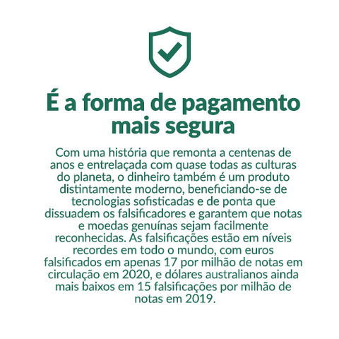 O dinheiro em espécie - numerário - é um método de pagamento muito importante para os cidadãos, é a moeda de curso legal que facilita a inclusão financeira de todos os grupos e segmentos da população de forma equitativa.